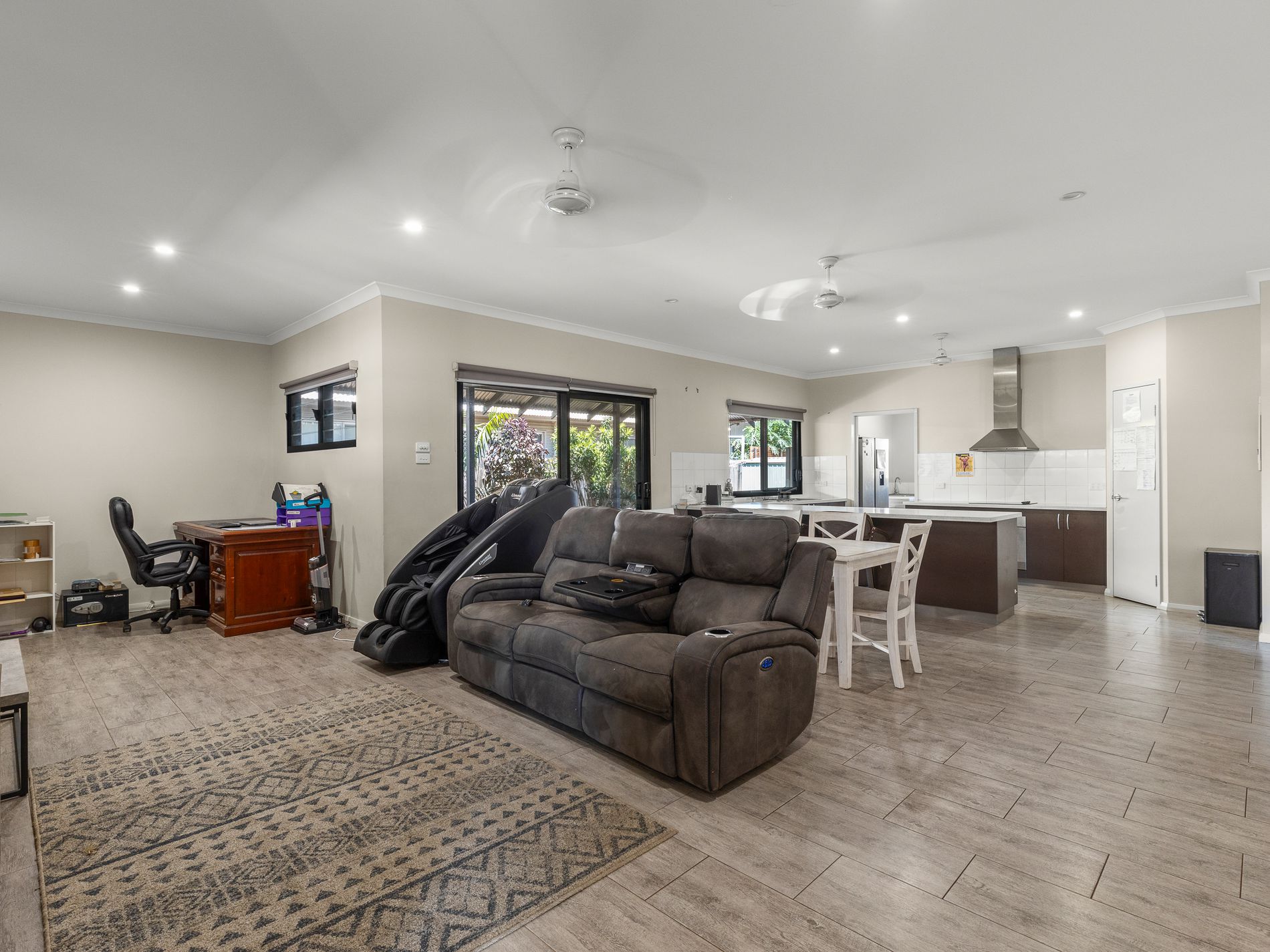 This ideal family home is features a spacious and modern kitchen with large pantry, dishwasher, expansive cupboard and bench space and breakfast bar. The huge living space flows on from the open plan kitchen and dining, which has plenty of space for the family to relax and make lasting memories together.