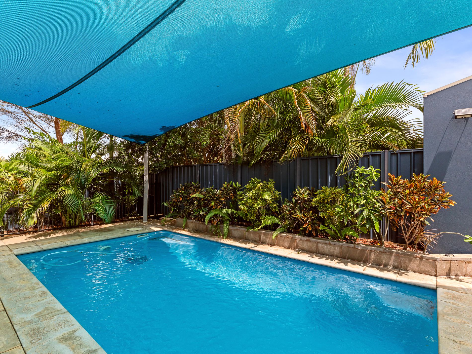 As you enter, you will be greeted by an aesthetically pleasing interior with modern bold pops of dark tones contrasted with crisp clean white - which creates an elegant yet soothing palate which flows throughout. The bold kitchen has been designed with functionality in mind, ready to cater to a busy household. Flowing on from the kitchen the spacious dining and living spaces are light and airy and open out to the lush alfresco area, seamlessly blending indoor and outdoor living. The alfresco beacons you to sit and bask in the afternoon breezes amongst the tropical greenery whilst enjoying the tranquility of this stunning paradise. Hues of deep blue sooth as the cool sparkling pool invites you to revitalize from the warm seasonal air. Beyond the pool is a lovely paved area and garden shed encircled by lush greenery. The area is fully fenced.